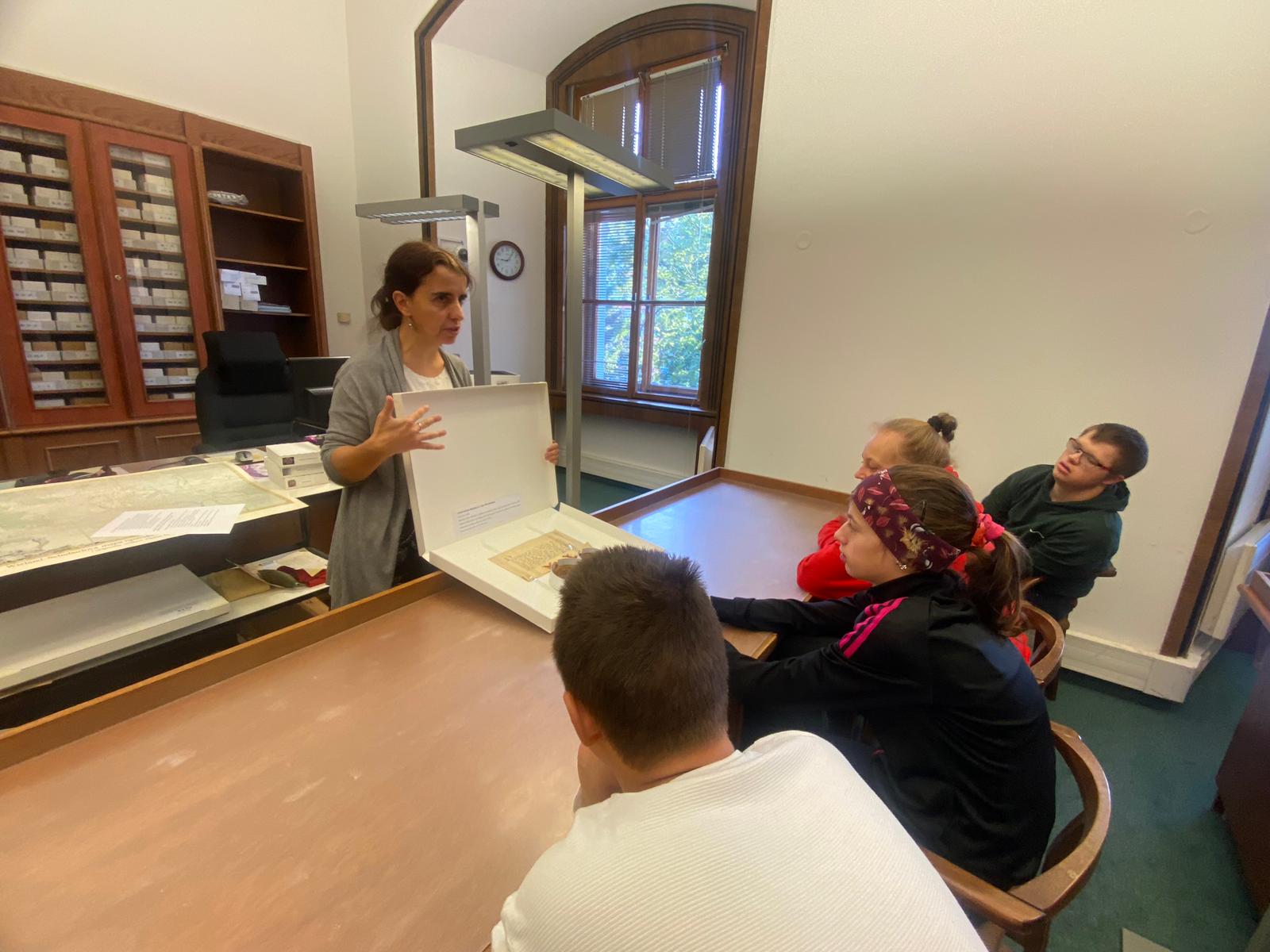 Asi nejzajímavější bylo pro žáky vidět dobové dokumenty, ručně psané a ilustrované knihy nebo jejich kopie, vidět, jak se vzácné dokumenty uchovávají například i v krabicích, které připomínají krabici od oblíbené pizzy.