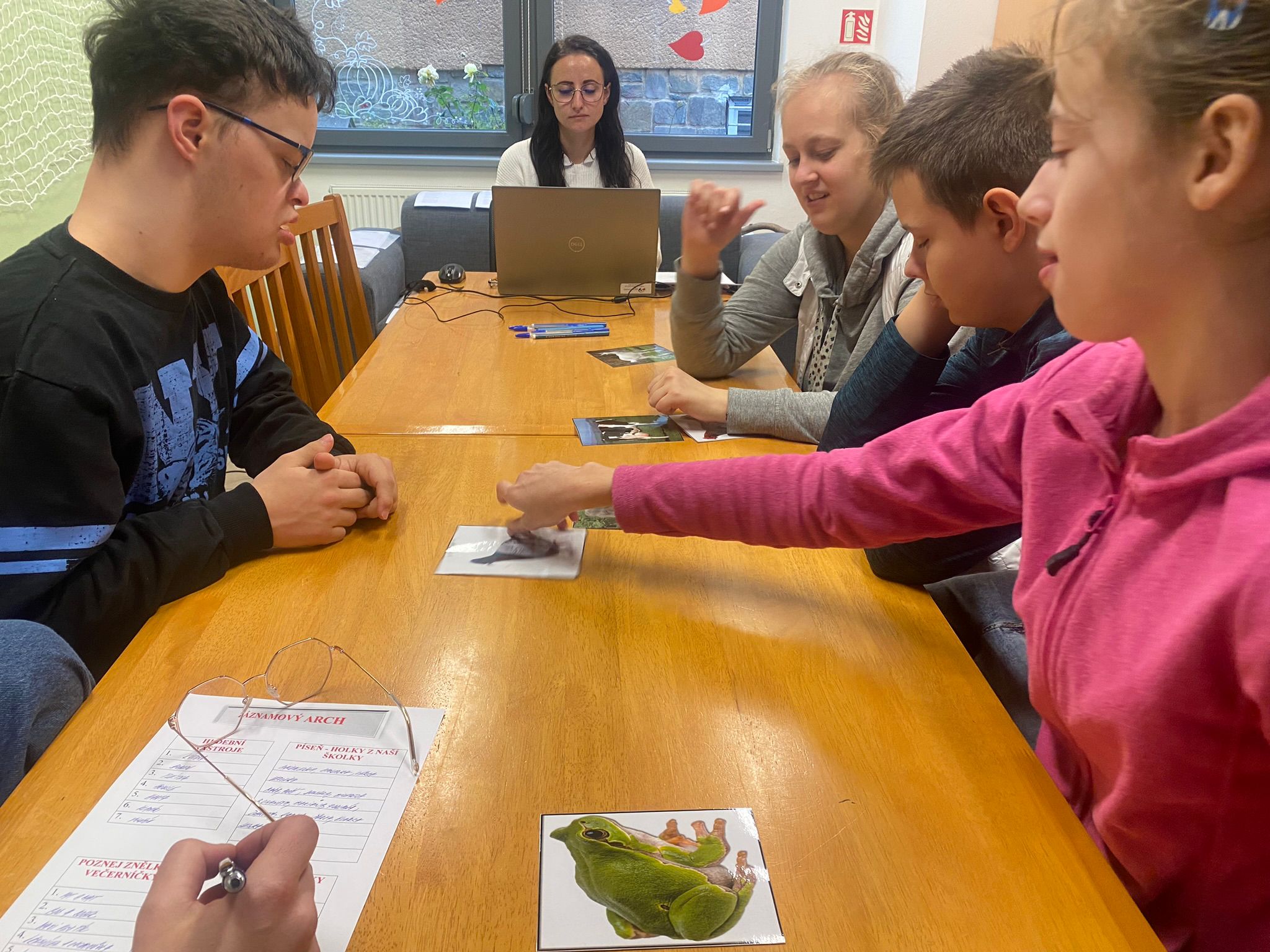 Po příjemné cestě do Kylešovic jsme byli přivítání v komunitním centru a na čtyřech stanovištích jsme měli možnost rozvíjet svůj mozek, paměť, smyslové vnímání a vnímání vlastního těla. Využili jsme možností seznámit se se zajímavými hudebními nástroji v relaxační místnosti - snoezelenu. Sluchem jsme rozlišovali různé hudební nástroje, znělky večerníčků, poznávali zvuky zvířat a ve známé písničce ”Holky z naší školky” vyhledávali jména dívek. A poznávali jsme také vlastní tělo hrou na tělo a pohybovým ztvárněním písniček. Žáci se pak seznámili s různými druhy bicích nástrojů, kterými rytmicky doprovázeli hudební ukázky a písně. Třešničkou na dortu a velikou odměnou pro všechny žáky byla pak sladká odměna v kavárně komunitního centra, kde nás obsluhovali jeho klienti. Netradiční dopoledne jsme si všichni užili. Už se těšíme, až budeme moci navštívit Anima Vivu u příležitosti jejich další připravované akce: Dne mozku.