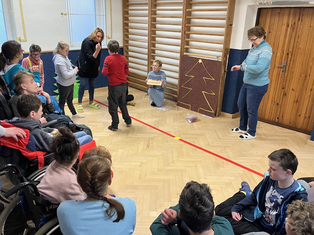 Ve středu 11.prosince se v tělocvičně sešli ke společnému prožívání radosti z adventu žáci rehabilitačních tříd spolu se žáky 2.praktické třídy . Ti spolu se svými učiteli a asistenty připravili různé úkoly motivované adventními zvyky . Bylo to velmi příjemné setkání plné smíchu, ale i soustředění a práce.