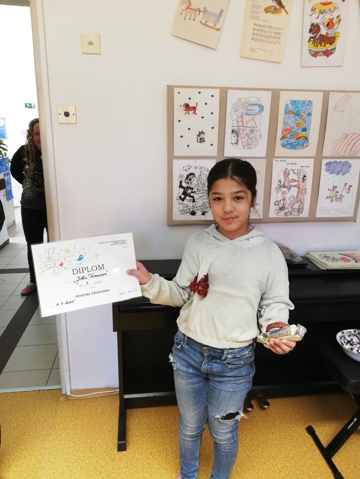 Kytara s foukací harmonikou doprovázely písně žáků vyššího stupně. Nejlepší výkon podala Kateřina Šelepská, druhé a třetí místo patřilo Anastázii Migotové a Katy Husárové.