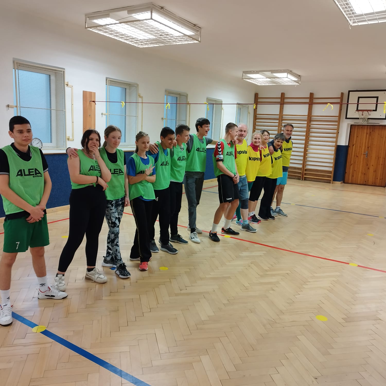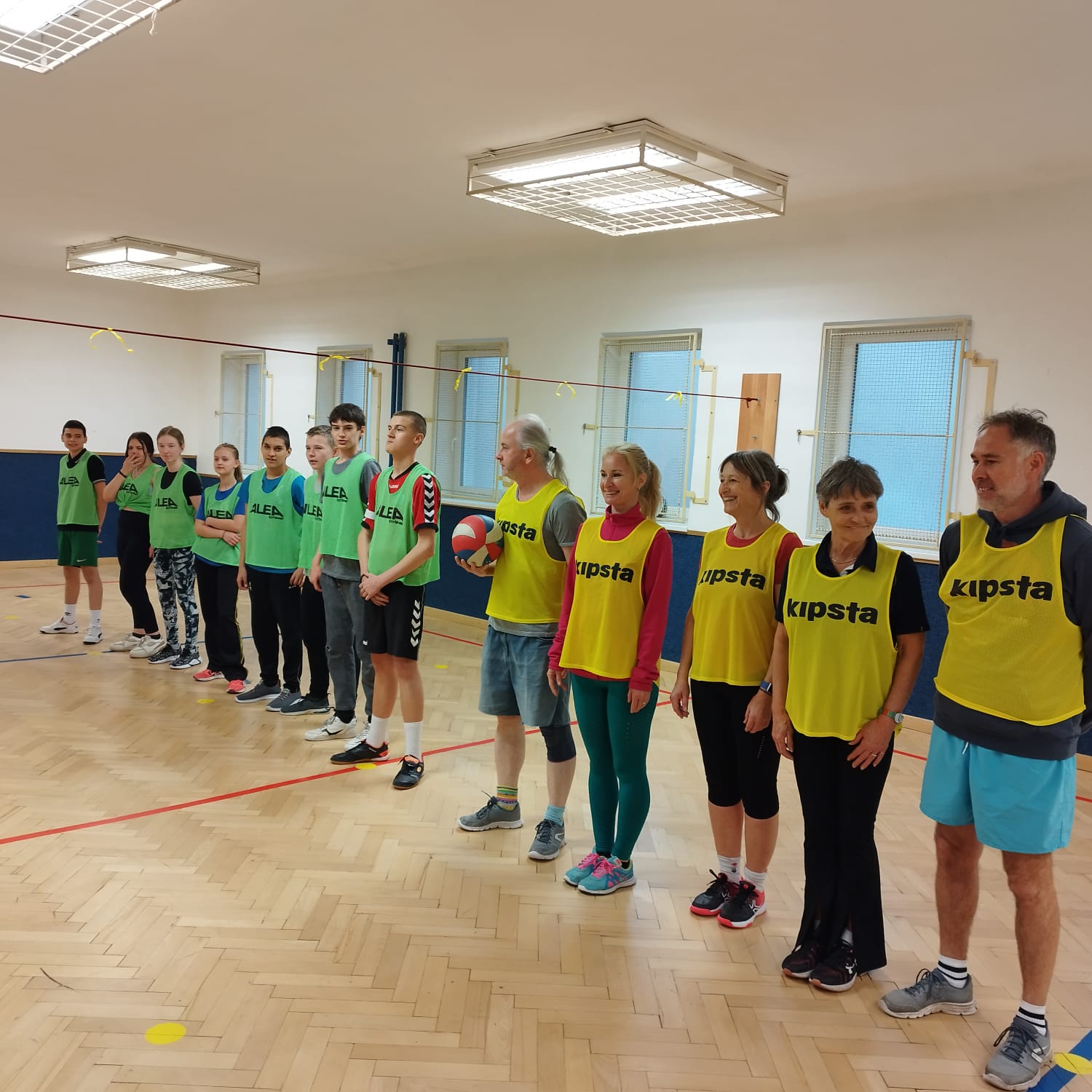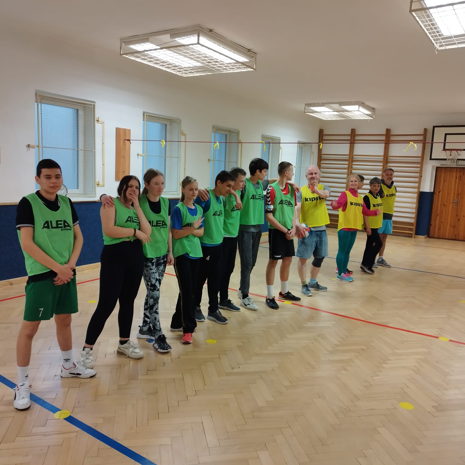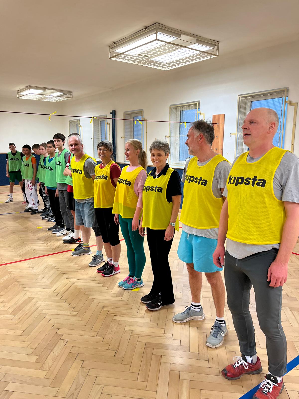 V pondělí 24.března se v naší tělocvičně uskutečnil dlouho očekávaný souboj…mač…prostě zápas. Soutěžilo se ve sportu, který pilně trénujeme v hodinách tělesné výchovy, a to v přehazované. Proti sobě se postavila dvě družstva, žlutí a zelení. Ve žlutých dresech nastoupili zástupci učitelského sboru a proti nim v zeleném kluci a holky ze sedmé až deváté třídy. Atmosféra byla výborná, trochu napjatá, protože každý chtěl vyhrát, ale zápas proběhl čistě a v duchu fair-play. Učitelský tým zvítězil po velmi vyrovnaném boji 3:1 na sety. Ale o to vůbec nešlo. Nejdůležitější bylo setkání učitelů a žáků, tentokrát trochu jinak než před tabulí nebo při písemce. Někteří učitelé i žáci přišli ve svém osobním volnu a společně si užili hodinu plnou pohybu a pozitivních emocí. Na závěr všechny sportovce neminula zasloužená sladká odměna, o kterou se postarali naši středoškoláci ze třídy praktické školy jednoleté. Akci pořádali členové ŽÁKOVSKÉ SKUPINY, kteří všem zúčastněným vyslovují veliký dík….