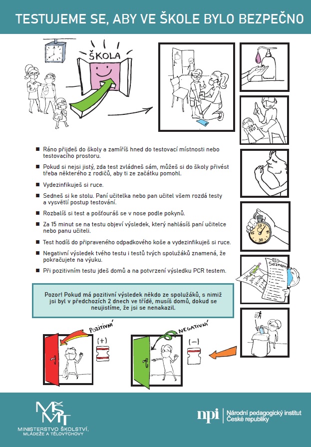 - Negativní výsledek = pokračuješ na výuku s ostatními žáky (pokud nejsou nějaké pozitivní testy u spolužáků).